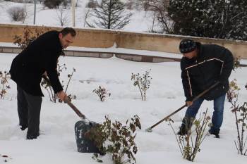 Kaymakam Ve Belediye Başkanı Şehitlikte Kar Temizliği Yaptılar