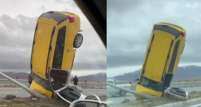 Videoyu Aç Kaza yapan otomobilin hali hayrete düşürdü
