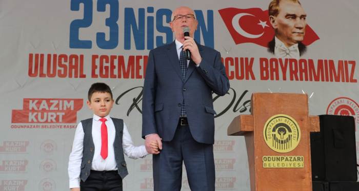Odunpazarı Belediyesi, 23 Nisan Ulusal Egemenlik ve Çocuk Bayramı’nı Kanlıkavak Parkında düzenlediği Çocuk Şenliği ile kutladı. Şenlik alanında ES TV’ye açıklamalarda bulunan Başkan Kurt, “Öncelikle bütün çocuklarımızın Ulusal Egemenlik ve Çocuk Bayramı kutlu olsun. Ulusal egemenliğin gerçekten Türkiye Büyük Millet Meclisi’ne bırakıldığı bir ülkede yaşamaktan büyük bir onur ve gurur duyuyorum. Hiçbir şey ulusal egemenliğin üstünde değildir. Bunun üstünde hiçbir gücü tanımıyoruz. Egemenliğin kayıtsız, koşulsuz ulusta olduğunu bir kez daha vurguluyoruz. 104 yıldır Türkiye’nin bir meclis kanalıyla yönetiliyor olması bizi mutlu kılıyor ama son dönemde değiştirilen anayasayla meclisin fonksiyonları azaltıldı. Biz bunun tekrar eski haline ya da Parlamenter Sistemin üstünlüğüne dönüştürülmesi için mücadele etmeye devam edeceğiz. Bugün de Atatürk’ün bu önemli bayramı çocuklara armağan etmesi nedeniyle Eskişehir’deki, Odunpazarı’ndaki çocuklarımızla bayramı kutluyoruz” ifadelerini kullandı.Başkan Kurt’un makamını devrettiği EymenDemirkol ise çok mutlu olduğunu belirterek, “Buradan Mustafa Kemal Atatürk’e teşekkür ediyorum. Aynı zamanda Odunpazarı Belediye Başkanımız Kazım Kurt’a teşekkür ediyorum” şeklinde konuştu.