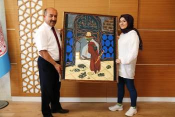 Devlet Hatun Mesleki ve Teknik Anadolu Lisesi Grafik ve Tasarım Bölümü’nde okuyan 12. sınıf öğrencisi Özlem Çınar, İl Milli Eğitim Müdürü Hasan Başyiğit’e kendi çizdiği "Kaplumbağa Terbiyecisi" konulu resmi hediye ederek yeni binanın hayırlı olması dileklerini iletti.