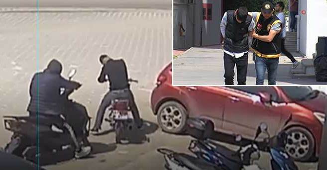 Edinilen bilgiye göre olay, 15 Nisan saat 19.30 sıralarında Seyhan ilçesi Kuruköprü Mahallesi’ndeki bir otelin önünde meydana geldi. Şüpheli Süleyman H. (21) ile ismi açıklanmayan suç ortağı, Ömer Ö.’nün park halindeki motosikletini çalmaya karar verdi. Süleyman H. motosikleti düz kontak yapmaya çalışırken, arkadaşı ise cep telefonuyla konuşma bahanesiyle gözcülük yaptı. Şüpheliler, alarmın çalmasına aldırış etmeden çalıştırdıkları motosiklete binip, bölgeden uzaklaştı. O anlar ise güvenlik kamerasına yansıdı.