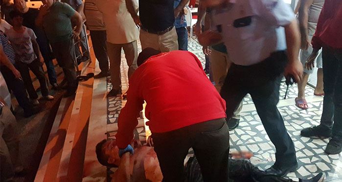 Cep telefonu ile görüntülenen anlarda yere düşen şahsın darp edildiği görülürken, görüntülerde şahıs aldığı darbelerle kanlar içinde yere düşüyor ve çevredeki vatandaşlar yaralanan şahsı grubun elinden alarak durumu polis ekiplerine haber veriyor.