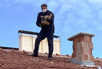 Merkez Yunus Emre Mahallesi Yamanlar Sokak’ta bir evin çatısında bulunan kırık kiremidin arasına kedinin sıkışmış olduğunu gören vatandaşlar itfaiye ekiplerinden yardım istedi. İhbar üzerine kısa sürede olay yerine gelen ekipler itfaiye aracının merdiveniyle ulaştıkları kiremitler arasındaki kediyi kurtardılar. Yarası olmadığı anlaşılan kedi daha sonra sokağa salındı.