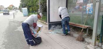 Kütahya Belediyesi’ne ait otobüs duraklardaki kırık camlar yenisi ile değiştirildi.