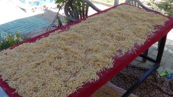İlçede ve köylerde komşular imece usulü ile toplanarak her gün bir kişinin eriştesini hazırlıyor.