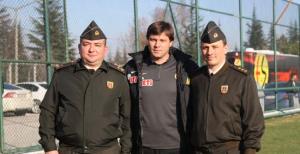 Eskişehirspor’un dünkü antrenmanında sürpriz bir konuk vardı. Odunpazarı Jandarma Komutanı Binbaşı Metin Ünlü ve Tepebaşı Jandarma Komutanı Yüzbaşı Ahmet Kaymak antrenman öncesi tesislere gelerek takımı ziyaret etti. Teknik Direktör Ertuğrul Sağlam’la bir araya gelen komutanlar, zorlu Fenerbahçe maçı öncesi başarı dileklerini ilettiler.