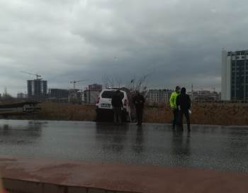 Kontrolden Çıkan Araç Banketten Düşerek Asılı Kaldı