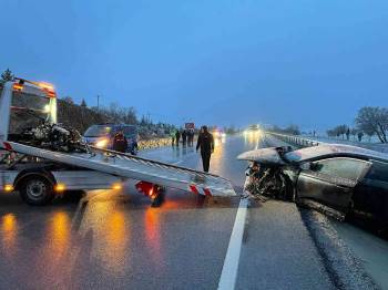 Afyonkarahisar’Da Kontrolden Çıkarak İstinat Duvarına Çarpan Otomobilde Bulunan 2 Yaşındaki Çocuk Hayatını Kaybetti, 3’Ü Çocuk 6 Kişi Yaralandı. Otomobilin Motorunun Birkaç Metre İleri Fırlaması Kazanın Şiddetini Gözler Önüne Serdi.