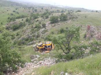 Kontrolden Çıkan İş Makinesi Uçuruma Devrildi