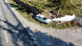 Afyonkarahisar’da kontrolden çıkan otomobil yol kenarındaki duvara çarparak durabildi. Aracın hurdaya döndüğü kazayı sürücü hafif yaralı olarak atlattı.