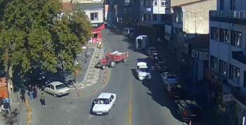Videoyu Aç Kontrolden Çıkan Traktör, Önce Araçlara Çarptı Sonra Kaldırıma Çıktı