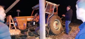 Kontrolden Çıkan Traktör Elektrik Direğine Çarptı, Sürücü Yaralandı