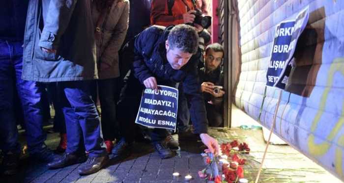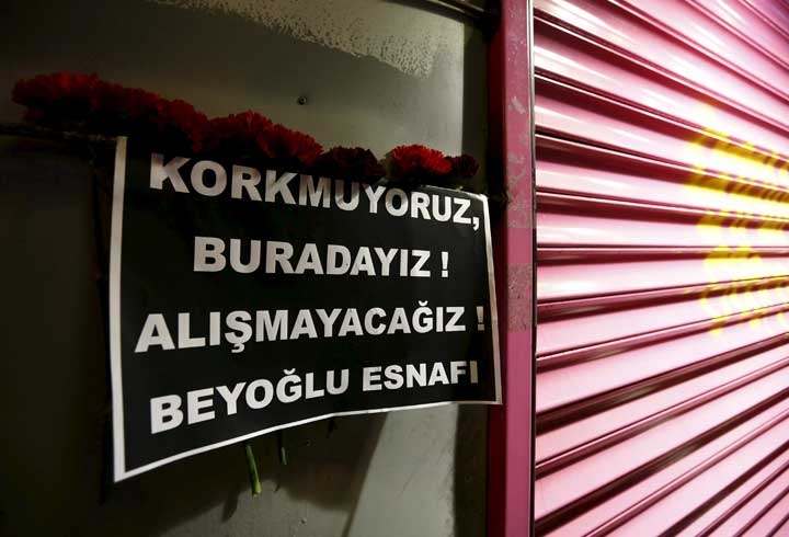 Cadde esnafı olay yerine karanfil ve üzerinde "Korkmuyoruz, buradayız, alışmayacağız, Beyoğlu esnafı" yazılı dövizler bıraktı.