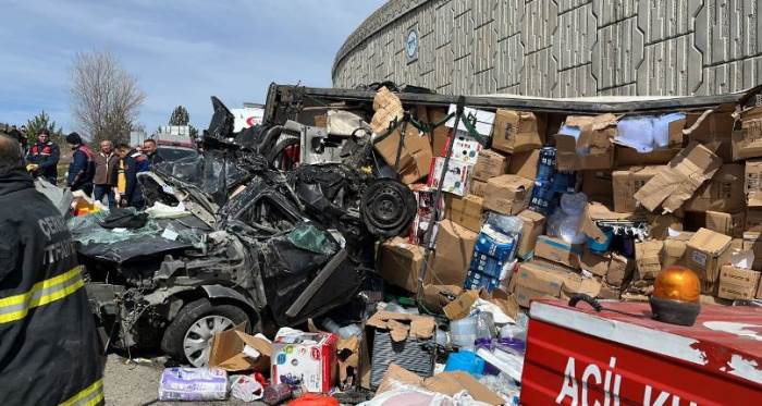 Çankırı'da feci bir trafik kazası meydana geldi. Kazada tır otomobilin üzerine devrildi, 4 kişi öldü, 2'si polis 3 kişi yaralandı