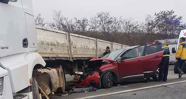 Bilecik'in Bozüyük ilçesinde, otomobilin tıra çarpması sonucunda meydana gelen trafik kazasında 3 kişi yaralandı.