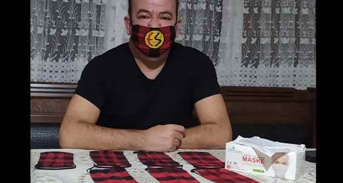Eskişehirspor taraftarı Hakan Öner, Koronavirüs nedeniyle maske takmanın zorunlu olduğu şu günlerde, özel hazırlattığı Es Es armalı Siyah-Kırmızılı maskeyi takarak hem önlemini alıyor hem de takıma olan sevgisini gösteriyor