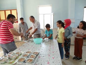 7 yıldan bu yana Köy Muhtarlığı ve halkın desteğiyle gerçekleştirilen geleneksel aşure tatlısını 6 yıldır pişiren İmamı İsmail Kocabıyık ve eşi, bu yıl da aynı görevi üstlendiler. Eşiyle birlikte sabah namazı sonrası aşure pişirmeye başlayan İmam Kocabıyık, yaklaşık 7 saatin sonunda 2 bin 400 kişilik iki kazan aşure pişirdi.