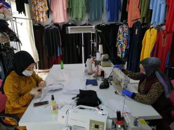 Öte yandan Osmaneli Belediyesi Sürekli Eğitim Merkezinde Kübra ve Hatice Tufan kardeşlerin kurdukları küçük atölyede maske ve boneler dikildi.