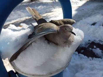 Şiddetli soğuklar hayatı olumsuz etkilemeye devam ederken, dışarıda kalan birçok hayvan da zor şartlarda yaşam mücadelesi veriyor. Gece eksi 16 dereceyi bulan soğuklarda birçok hayvan da donarak telef oluyor. Sabah işyerlerine gelen esnaflar ilçe merkezi hükümet konağı önündeki bir çöp kutusu üstünde soğuktan donarak, buz kesilen kumru kuşunu fark ettiler. Tahminen çöp kutusuna yiyecek aramak için gelmiş kumru kuşu soğuktan donarak buz kesmişti. Vatandaşlar tarafından elektrikli soba ile ısıtılıp kurtarılmaya çalışılan kumru kuşu, tüm çabalara rağmen kurtarılamayarak telef oldu.