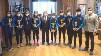 Kütahya Belediyespor atletizm takımı U16 sporcuları, Belediye Başkanı Alim Işık’ı ziyaret ederek katıldıkları müsabakalarda elde ettikleri kupa ve madalyaları takdim ettiler.