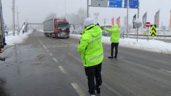 Kütahya’da yoğun kar yağışı sebebiyle çevre yollarda büyük araçların geçişine izin verilmiyor.
