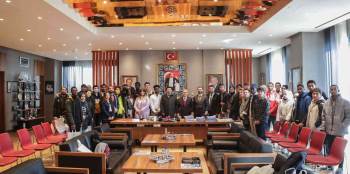 Kütahya Dumlupınar Üniversitesi’nde (DPÜ) eğitim gören ’43 farklı ülkeden 43 öğrenci’, Belediye Başkanı Alim Işık’ı makamında ziyaret etti.