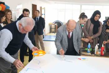 Özel eğitim okullarındaki velilerine yönelik yapılan "Sanat Terapisi" etkinliğinde ilk boyamayı Milli Eğitim Müdürü Hasan Başyiğit ve Güzel Sanatlar Fakültesi Dekanı Prof. Dr. Levent Mercin birlikte yaptı. Projenin sanat uygulayıcısı olan Prof. Dr. Kübra Kuzucanlı, velilere sanatın dışa vurumcu bir yöntem olduğunu ve 3 günlük eğitimden oluştuğunu belirtti.