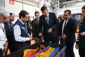 Vali Çelik, ziyaretler sırasında fabrikaların üretim alanlarını da gezerek incelemelerde bulundu ve işçilerle sohbet etti, kolaylıklar diledi.