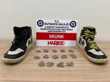 Edinilen bilgiye göre, İl Emniyet Müdürlüğü Narkotik Suçlarla Mücadele Şube Müdürlüğü ekiplerince yapılan çalışmalar sonucunda Kütahya’ya uyuşturucu madde getireceği bilgisine ulaşılan N.D.’nin içerisinde bulunduğu araç tespit edilerek, il merkezinde Eskişehir yolu girişinde durduruldu. Şahsın üzerinde ve eşyalarında yapılan kontrollerde ayakkabı taban alt kısmına zulalanmış satışa hazır vaziyette kilitli poşet içerisinde 14 parça halinde toplam 15.45 gram skunk maddesi ele geçirildi. Gözaltına alınan şahıs, emniyetteki işlemlerinin ardından çıkarıldığı mahkemece tutuklandı.