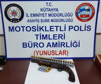 Kütahya’da Motosikletli Polis Timlerince bir araçta yapılan aramada, 1 ruhsatsız tüfek ve bu tüfeğe ait 25 fişek ele geçirildi.