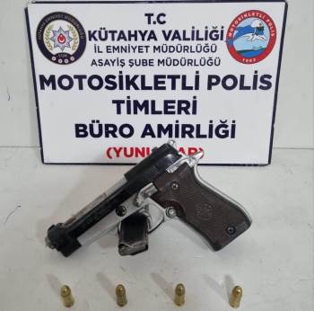 Kütahya’da Motosikletli Polis Timlerince bir kişinin yapılan üst aramasında, ruhsatsız tabanca ve 4 fişek ele geçirildi.