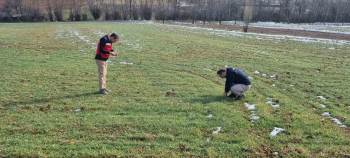 İl Tarım ve Orman Müdürlüğü Bitkisel Üretim ve Bitki Sağlığı Şubesi teknik personeli tarafından Tarım Arazilerinin Kullanımının Etkinleştirilmesi (TAKE) projesi çerçevesinde dağıtılan buğday tohumlarının arazide ekiliş ve çimlenme kontrollerine devam ediliyor.