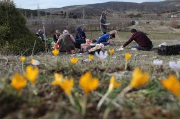 Kütahya’nın mesire alanı Porsuk’ta baharın müjdeleyici olan çiğdemler çiçek açtı.