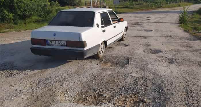 Kütahya'da, Enne piknik alanı bölgesindeki yolun adeta köstebek yuvası haline geldiğini belirten vatandaşlar, yolun tamiri için yetkililerden yardım istedi