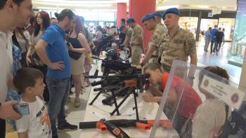 Jandarma ekipleri, bir alışveriş merkezinde düzenlenen etkinlikte, yerli piyade tüfeklerini, yeni nesil dron cihazlarını ve operasyonlarda kullandıkları farklı ekipmanlar ile teçhizatları Kütahyalı vatandaşlara tanıttı.