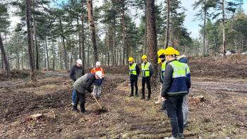 Sarıçamda doğal gençleştirme sahalarında arazi hazırlığı ve toprak işleme çalışmaları, doğal gençleştirme sahalarında ışık ve boşaltma kesimi uygulamaları tekniğinin uygulamalı olarak anlatıldığı eğitimlerde ayrıca sık gençliklerde seyreltme çalışması uygulamalı olarak gösterildi.