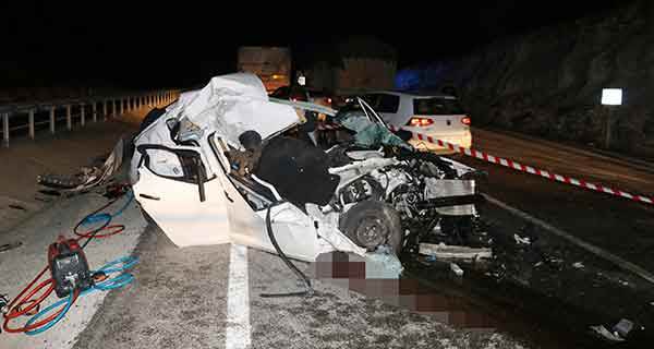 Kazada, otomobilin ön sağ koltuğunda oturan Turan Fidan (60) olay yerinde yaşamını yitirdi.