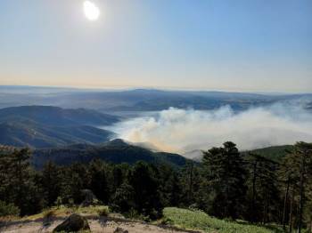 Yaklaşık 200 hektarlık alanda etkili olan yangına 650 personel, 58 arazöz, 12 su ikmal aracı, 15 itfaiye ve 6 dozer görev yapıyor.