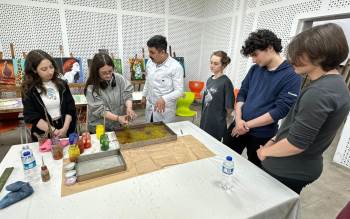 Kütahya Necip Fazıl Kısakürek Anadolu Lisesinde İspanyol Öğrencilerin Ebru Çalışması