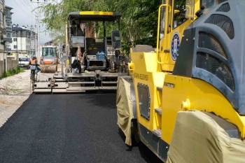 Kütahya Belediyesi Fen İşleri Müdürlüğü ekipleri, Dumlupınar Mahallesi’ndeki sıcak asfalt serim çalışmaları devam ediyor.