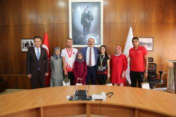 Atletizm Dünya Şampiyonu Oğuz Türker İle Atletizm Balkan Şampiyonu Hacer Yılmaz, Kütahya Valisi Ömer Toraman’I Ziyaret Etti.