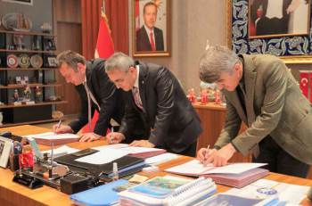 Yapılan sunumun ardından Belediye Başkanı Prof. Dr. Alim Işık, Osmangazi Üniversitesi Prof. Dr. Kemal Şenocak, Kütahya Dumlupınar Üniversitesi Rektörü Prof. Dr. Kazım Uysal protokolü imzaladı.
