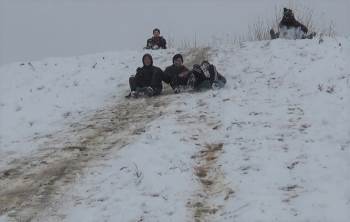 Kütahya (İha) - Kütahyalılar, Merkeze Bağlı Demirciören Köyünde Poşetlerle Kayarak Yamacı Doğal Kayak Pistine Dönüştürdüler.