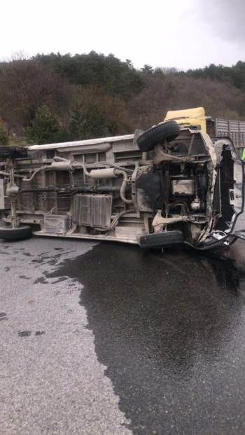 Lastiği Patlayan Kamyon Devrildi