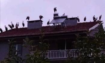Videoyu Aç Leylekler Çatılarda Göç Molası Verdi