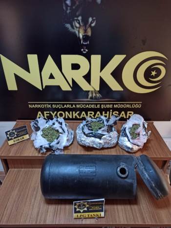 Olay, Afyonkarahisar-Ankara karayolu Susuz Kavşağı’nda meydana geldi. İl Emniyet Müdürlüğü Narkotik Suçlarla Mücadele Şube Müdürlüğü ekipleri, şüphe üzerine durdurduğu 79 AH 283 plakalı otomobilde detektör köpek Zela’nın da yardımıyla arama yapıldı. Köpeğin LPG deposuna tepki vermesi üzerine polis ekiplerince sökülen depoda 4 kilo 600 gram esrar bulundu. Operasyonun ardından araç sürücüsü Mazlum G., "uyuşturucu madde ticareti yapmak" suçundan gözaltına alındı.