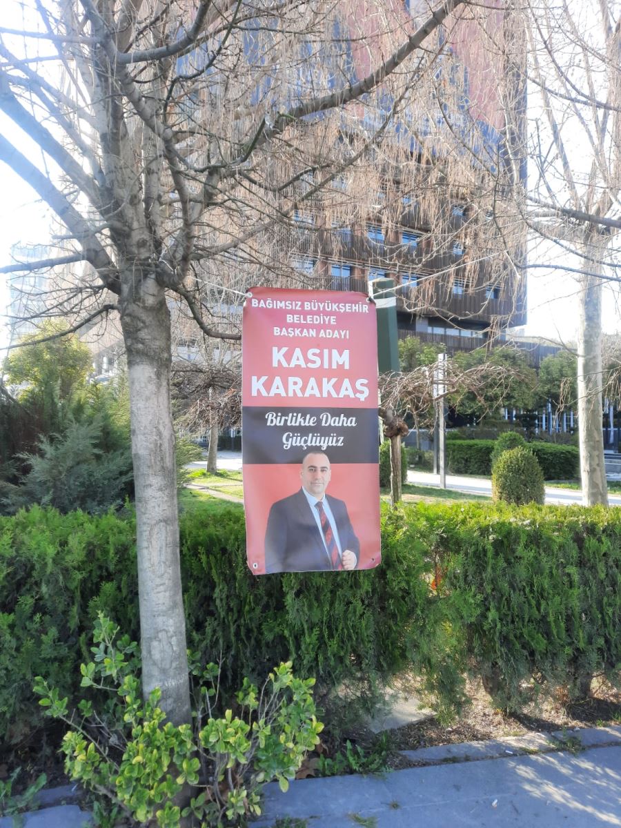 Kasım Karakaş’ın iplerle ağaçların arasına asılmış pankartını gördüm…