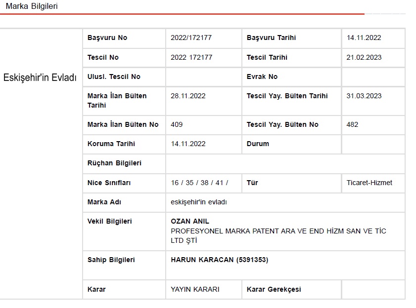 “Eskişehir evladı” artık marka oldu. Eskişehir Evladı markasını tescilleyen ve sahibi olan kişi de bir Eskişehir evladı…