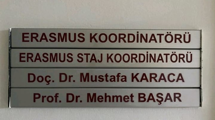 Kadim insan Prof. Dr. Mehmet Başar Hocamın kapı isimliğini kapıma taktım. Mehmet Hoca 30 yıl şerefle hizmet verdiği fakültesinden Dekanlık gibi en üst fakülte yöneticiliğini de ifa ettikten sonra emekli oldu ve ismini fakültede yaşatmak talebim üzerine bana nasip oldu.