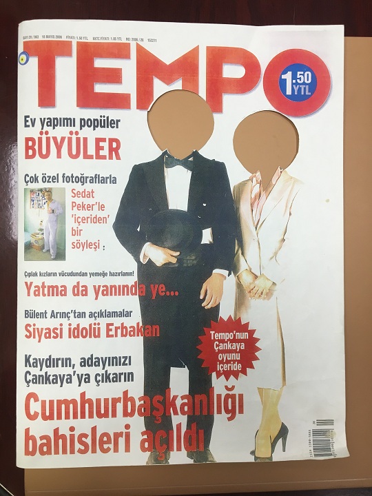 Derginin editörleri okuyucudan, gönlünden geçen adayın ve eşinin baş fotoğraflarıyla boşlukları doldurmasını istemiş, seçtiği adayı dergiye göndermesi gerektiğini belirtmiş…